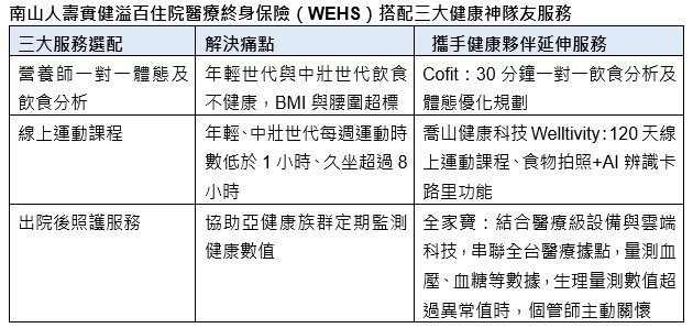 圖說:南山人壽近日推出重磅級保單「實健溢百住院醫療終身保險」,搭配三大健康神隊友服務,協助保戶逆轉代謝症候群。